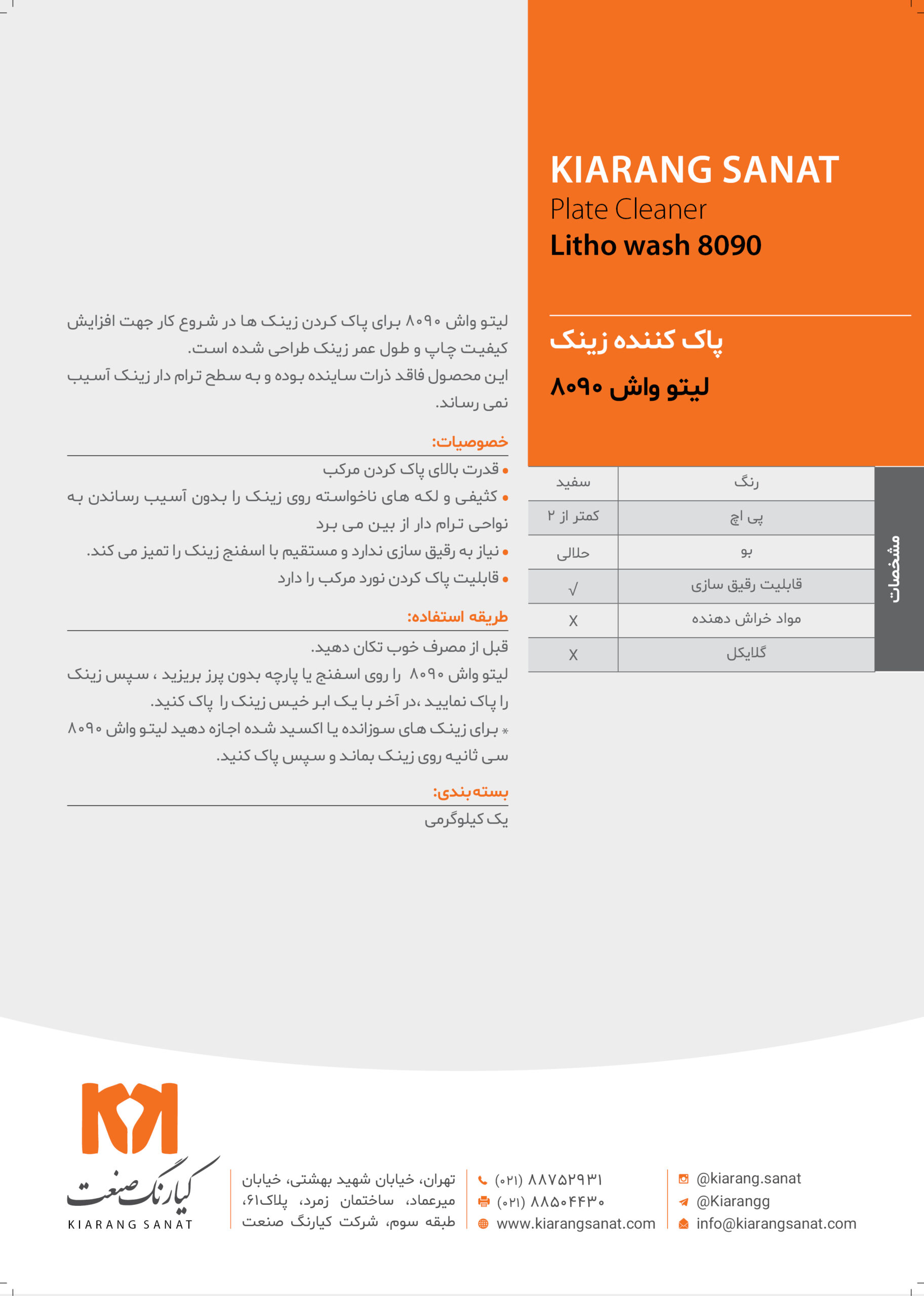 پاک کننده زینک (لیتو واش 8090) کیارنگ صنعت