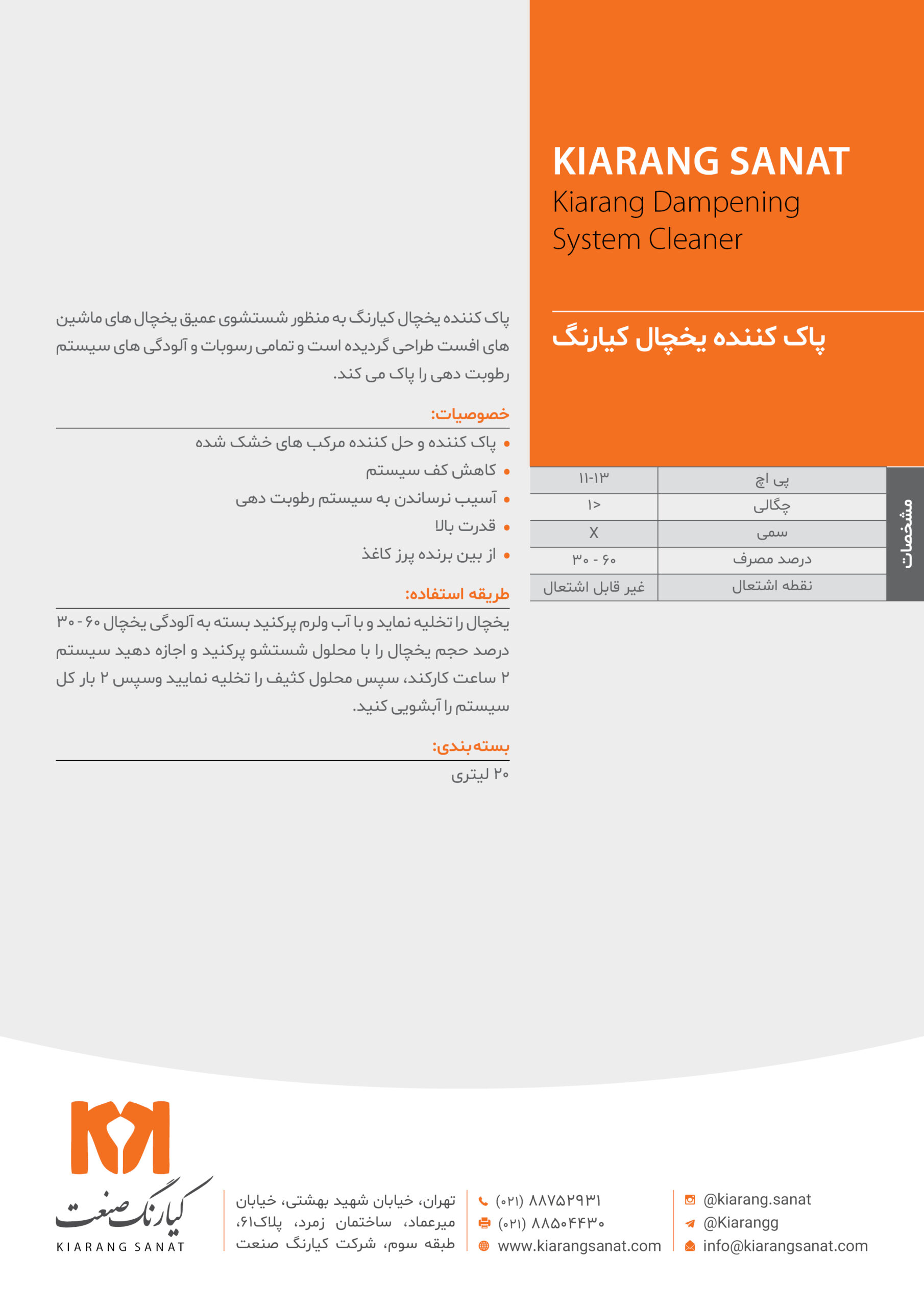 پاک کننده یخچال کیارنگ به منظور حذف رسوبات، باکتری و قارچ ها و پرز کاغذ در سیستم رطوبت دهی طراحی و تولید شده است. تجمع این مواد در سیستم می تواند آسیب بسیار جدی به ماشین برساند.